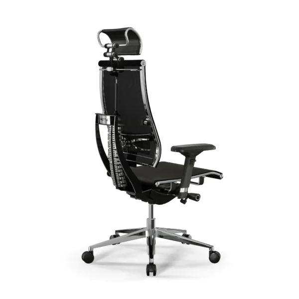 Metalni ram naslona za ledja sa inovativnim i jedinstvenim dizajnom koji omogućava podešavanje naslona u 4 pozicije (levo, desno, gore, dole). Verno prati kretanje ledjnog naslona, pomaže pri istezanju ledja posle dugotrajnog sedenja tako što je stolicu moguće koristiti u ležećem položaju. Stolica se može klasifikovati kao medicinsko pomagalo za bolna ledja srednjeg i visokog inteziteta korisnika.